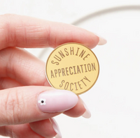 The perfect pin for all you sun worshippers! A lovely shiny pin, featuring our 'Sunshine Appreciation Society' design. Made from yellow hard enamel and matt toned gold metal with a rubber clasp.