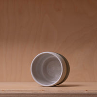 Wheel thrown in warm buff clay. These mugs have a gloss white celadon interior, and a matte white & bluey green dipped exterior. The glaze on each is individual, and depending on the position in the kiln, some have warmer cream/sandy colouring on sections of the white glaze.