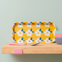 Enamel Happy Retro Floral Tray- Honey Yellow