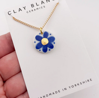 Clay Blanca - Hand painted Blue, White & Gold Flower Pendant