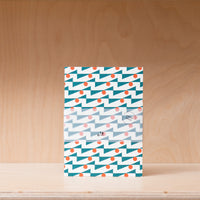 Pocket size layflat notebook featuring Ola's limited edition Enid print in turquoise / red