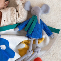 Knitted in 100% cotton and filled with biodegradable stuffing, the elephant ragdoll is carefully made, and beautifully finished with embroidered detailing.