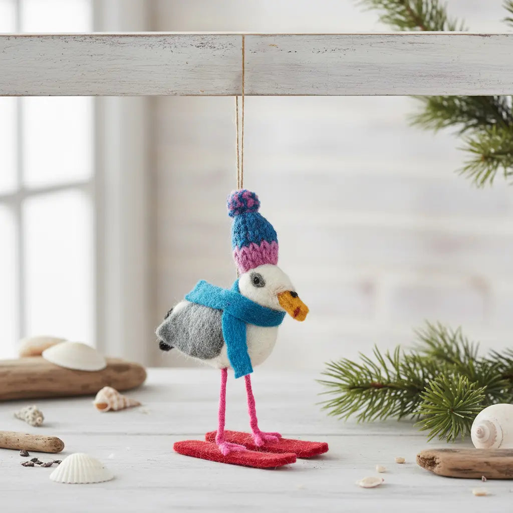 Handmade Needle Felt Ski-Gull Christmas Seagul Hanging Decoration